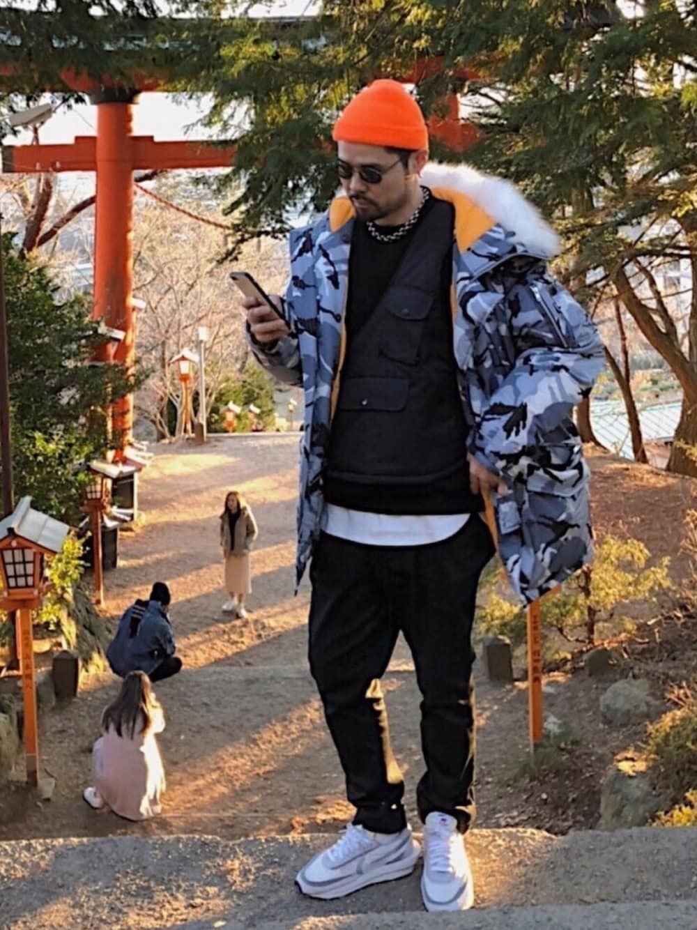 新倉山浅間公園いきました。 ジャケットの裏地とキャップを色を合わせてみました。 トップスのベストにポケットがたくさん付いてて収納◎です。笑