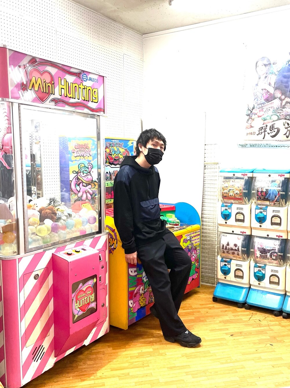 草津熱帯圏のゲームコーナーにてここで撮ったら面白くね? と思って撮ったけど服が全くあっていなかった。カラフルな服で撮りたかった..