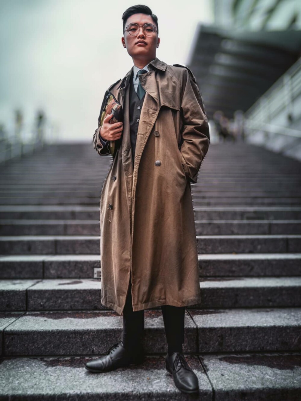Suit walk 2020 in Taipei Suit: made to measure by EZ Vest: H&M Trench coat: bought it in an 古着 shop in Taipei Pants: H:connect Shoes: ZARA