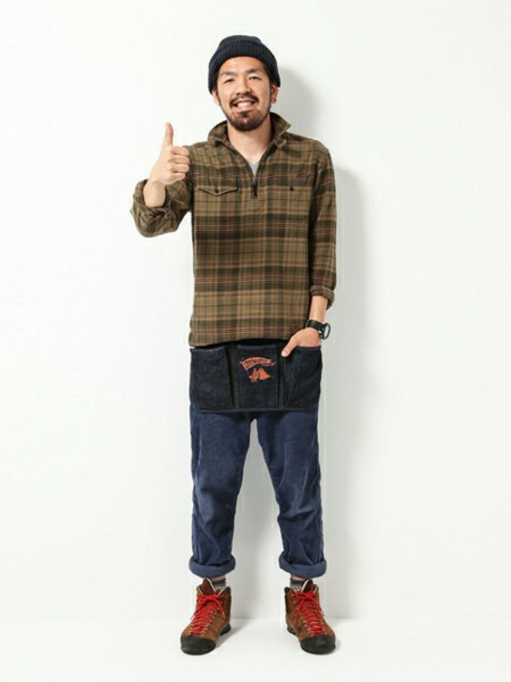 古着のpoloのkidsシャツにandwanderのデニムエプロンが最近のお気に入り^^