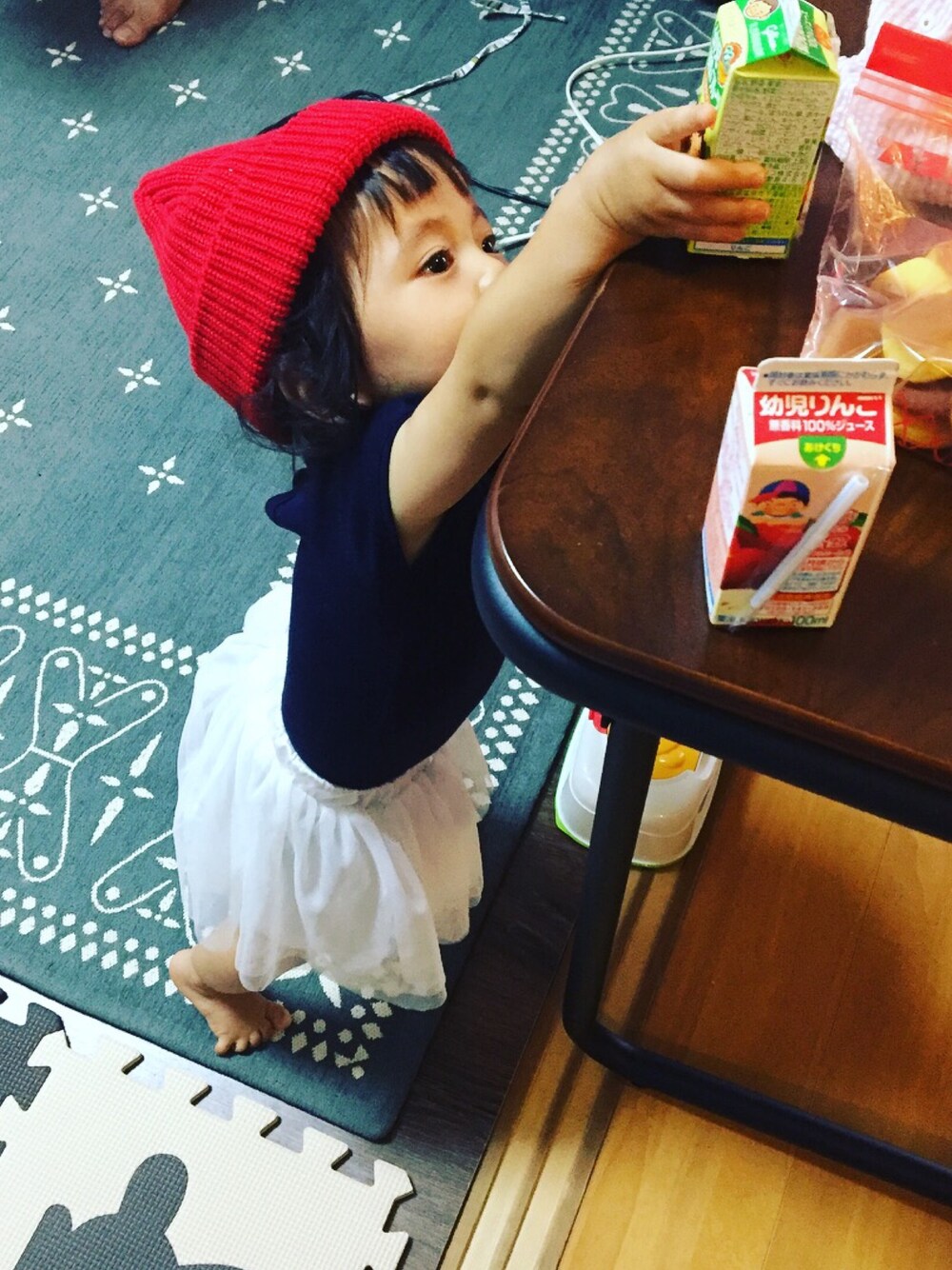 気がついたら… 机の上の物を取るまでに成長していたΣ(´゚Д゚`) 大好きなジュースを目掛けて必死に頑張っています🙄笑