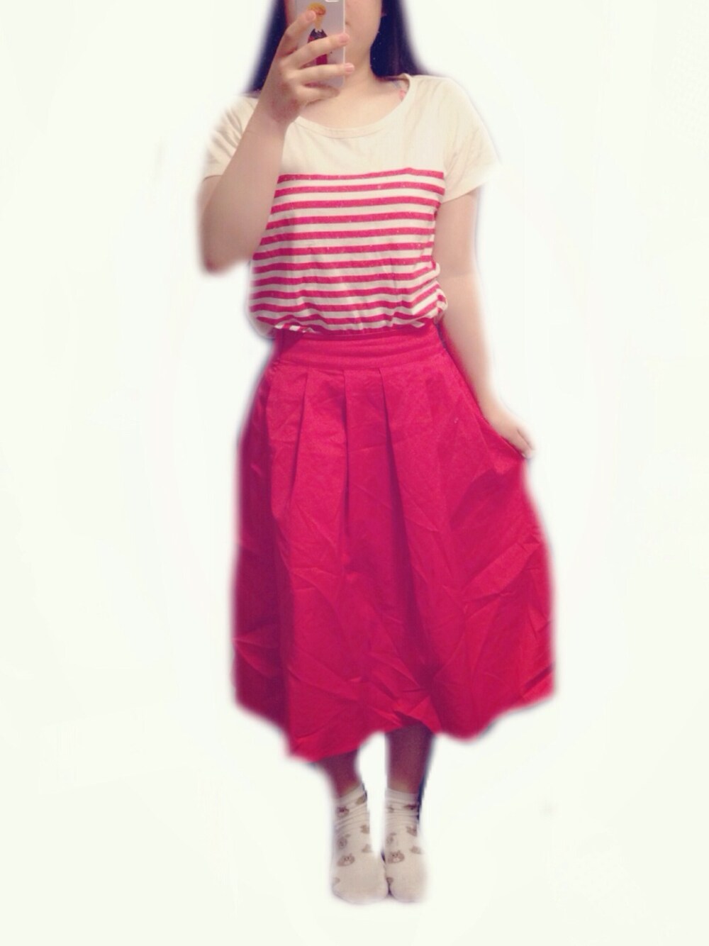 2014.06.02 ( mon ) 赤が主役のコーデ ! 暑かったのでシンプルに 、 でも赤で存在感 !!! 笑 Tシャツ UNIQLO スカート LEPSIM 靴 ニューバランス