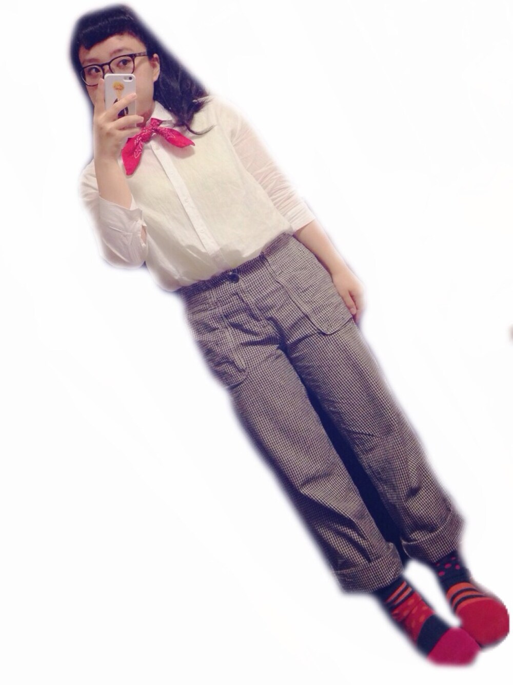 2014.06.10 ( tue ) シンプルだけど小物で差し色 ▽ バンダナもっと使えるようになりたいなあ ◎ お勉強です ✔︎ ポニテが良い感じにうまくいった !! シャツ GLOBAL WORK ボトムス ??? バンダナ 通販 靴下 tutuanna 靴 無印良品