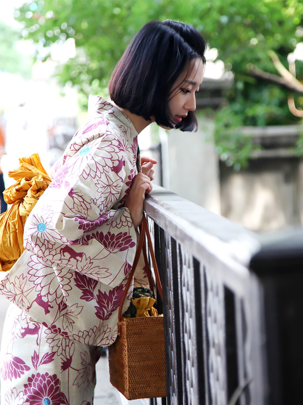 ニコアンティークのかごバッグ「バリ島 アタバッグ」を使ったコーディネート