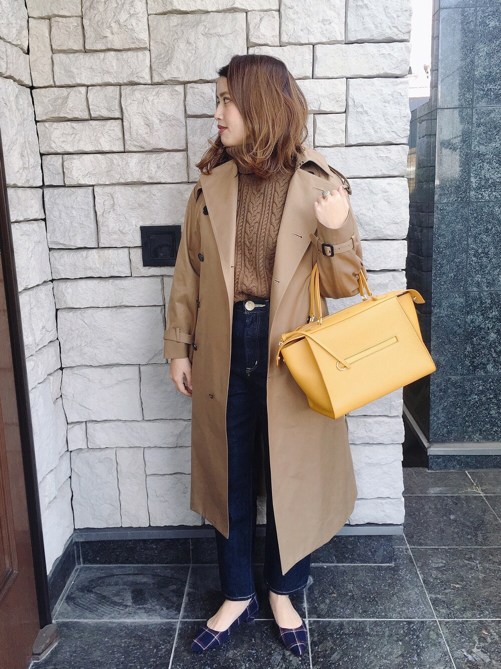 トレンチコートが好き! ロング丈で丁度良い丈😊