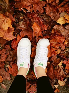 「adidas(アディダス)のアイテム(スニーカー、ホワイト系)」を使った、rappiさん(レディース・165cm)の秋コーディネート