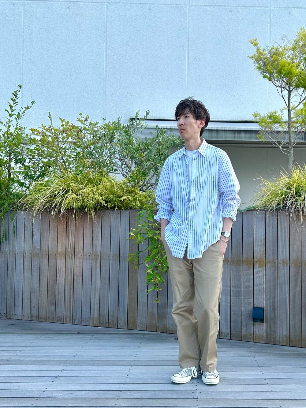 気楽さと キチンと感 どちらも兼ね備えているシャツ 羽織るだけの気軽なコーディネート