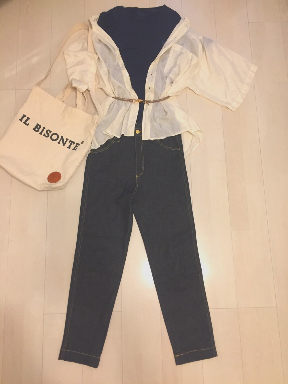 古着屋さんのTシャツとシルクシャツが 着心地抜群すぎる\♥︎/ カスタネのデニムもハイウエストで シルエットがとっても綺麗です👏🏻