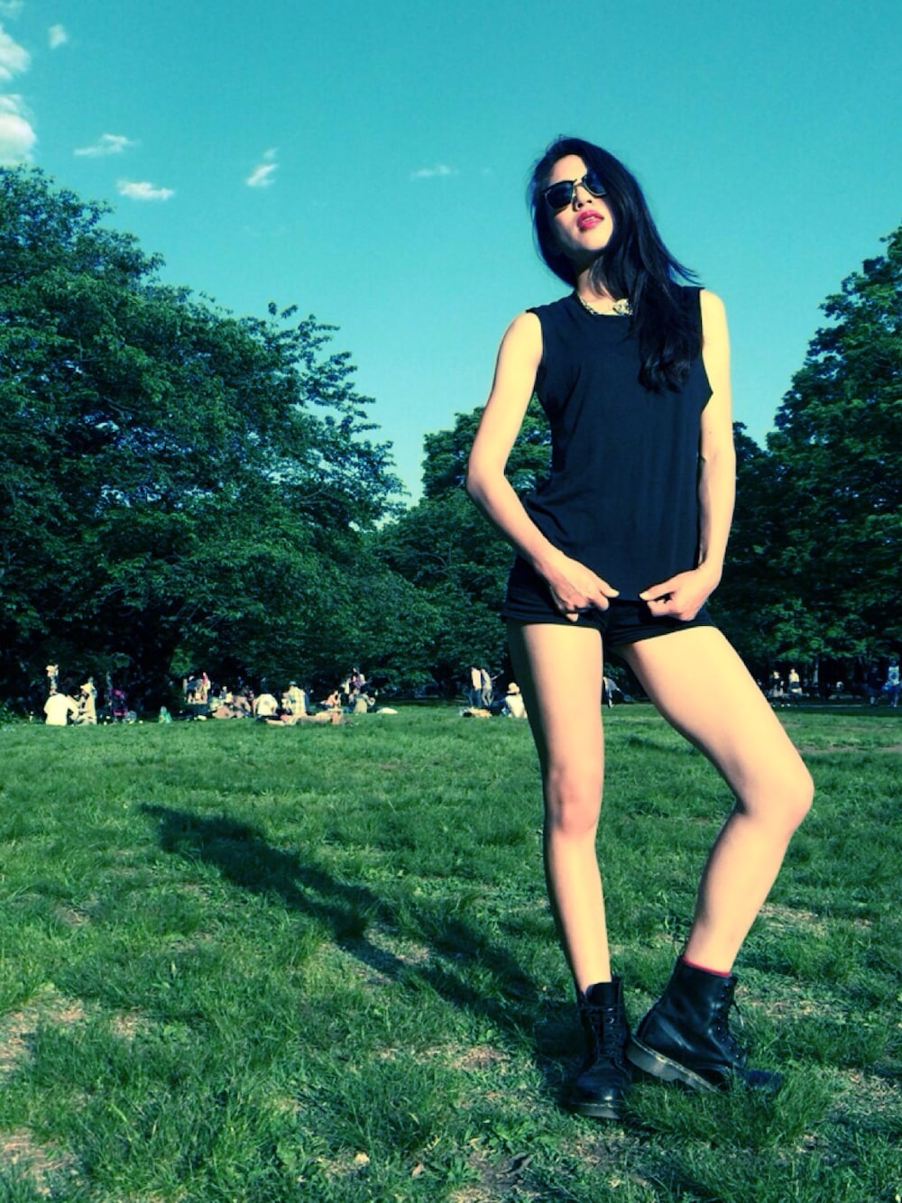 Top:H&M Bottom:SLY Glasses:Ray-Ban Accessory:zara