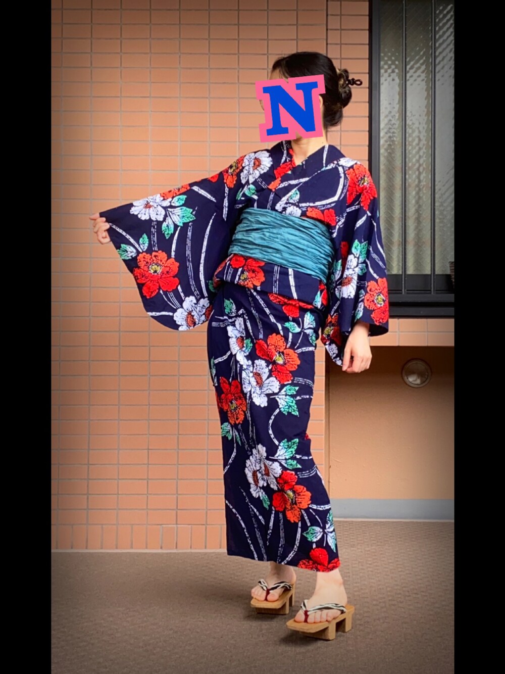 お家浴衣🏠 くしゅくしゅ兵児帯で浪人結び。