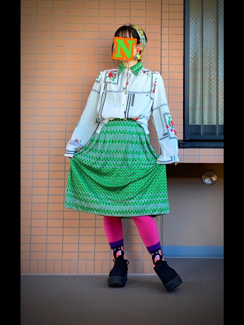 白いブラウスはお友達からの頂き物で恐らく古着。 手持ちのワンピースと重ねてみたら、あらいい感じって事で気に入っているコーデになった。