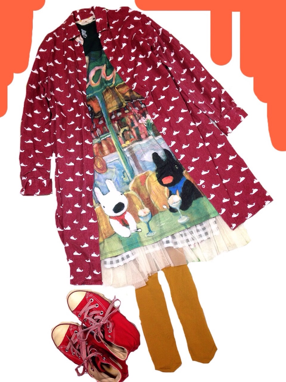 リサとガスパール と 赤・緑・黄の信号機… 最近多いな… シャツ…? スカート…THE EMPORIUM タイツ…ネットで