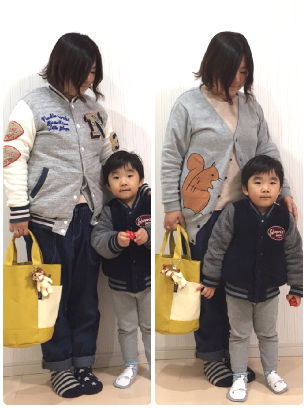 こんばんは✨ 今日は久しぶりに息子と一緒に🎶 息子は相変わらず手にトミカを持っています🚗 今日はUNIQLOのワッフルTにI am I のリスカーデにmercibeaucoup,のサルエルでした。 ワッフルT欲しかった色がお店にあったので、すかさず購入😅 日中は暖かかったので、Needle work soonのスタジャンでした😊 息子もEASTBOYのボアスタジャンで、ちょっとリンクかな? バッグは今年のTully'sの福袋のもの。 私の好きなカラシ色に近い黄色。 ネイビーもあって迷ったけど、やっぱりカラシがよくて♡ 今日は寝落ちはしてないけど、もう眠い~😪