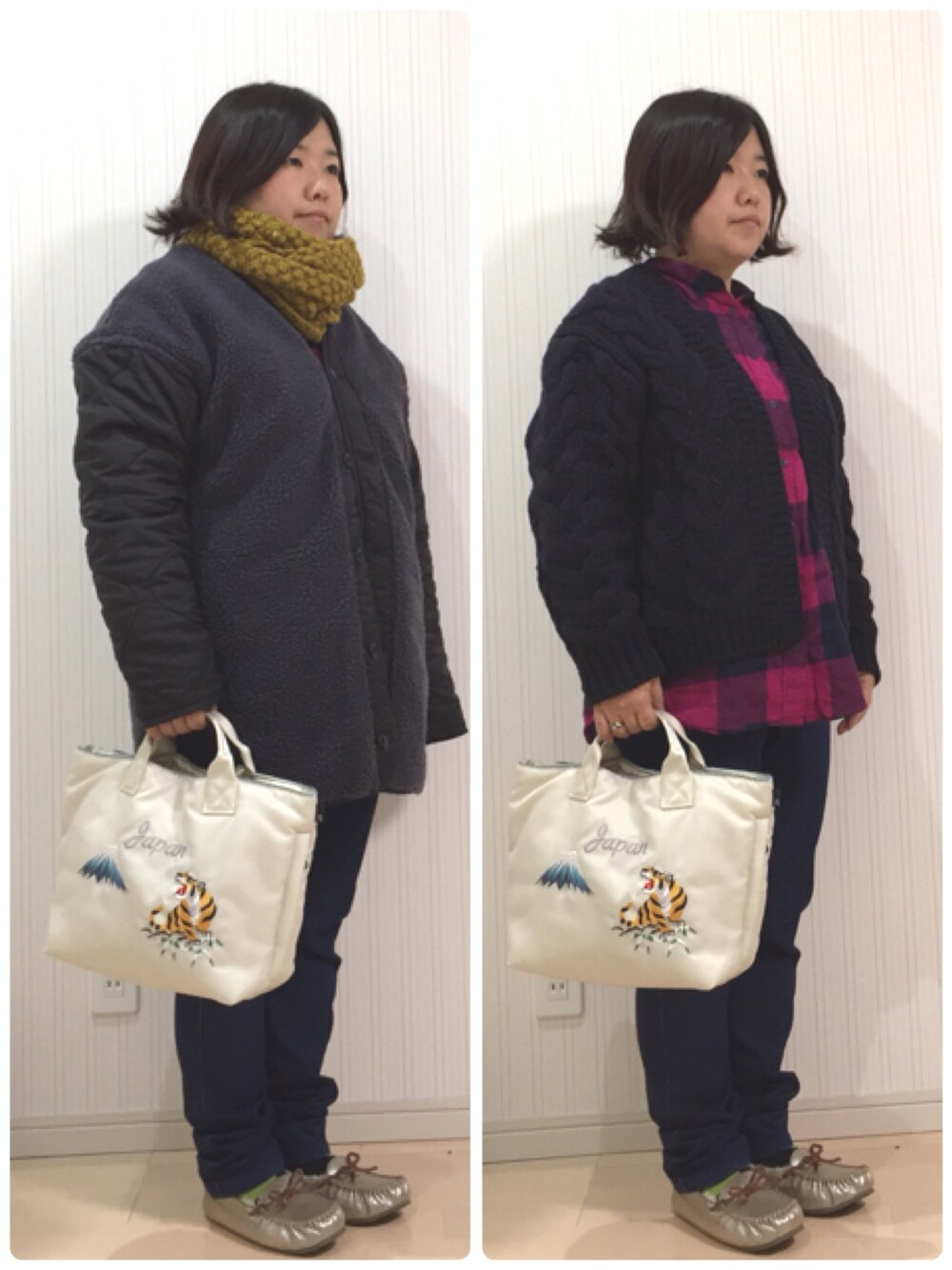 こんばんは✨ 今日は着ぶくれコーデ😅 GUのカーデにnikoのボアアウターで、もっこもこ💦 寒くてスヌードぐるぐるで埋まってます・・・。 仕事中はカーディガンは脱いで、シャツ1枚だったけど、明日から寒くなるみたいなので、明日も着ぶくれ必至です💧