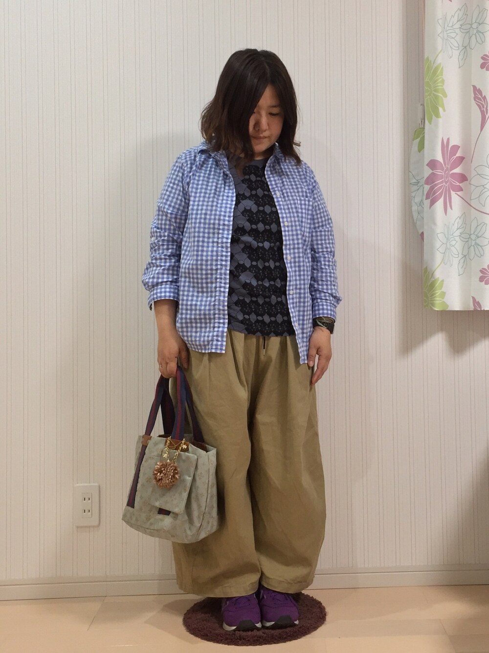 こんばんは✨ 今日は旦那が出張でいないので、子供たちの寝かしつけで寝落ち必至だったけど、奇跡的?に23時に目が覚めて良かった~😃 今日のコーデ。 仕事中は半袖が必須なので、去年買ったにゃーTにnikoのパンツを合わせました。 チェックシャツもnikoで。 ピアスは去年の母の日に娘にもらったプレゼント🎁 これからの季節に活躍出来そう😊 バッグは数年前のrussetのもの。 色もデザインも一目惚れして買いました。 カゴバッグみたいに巾着付きなので安心♡ 明日一日行ったら3連休♪ .* 明日こそは寝落ちしませんように😅