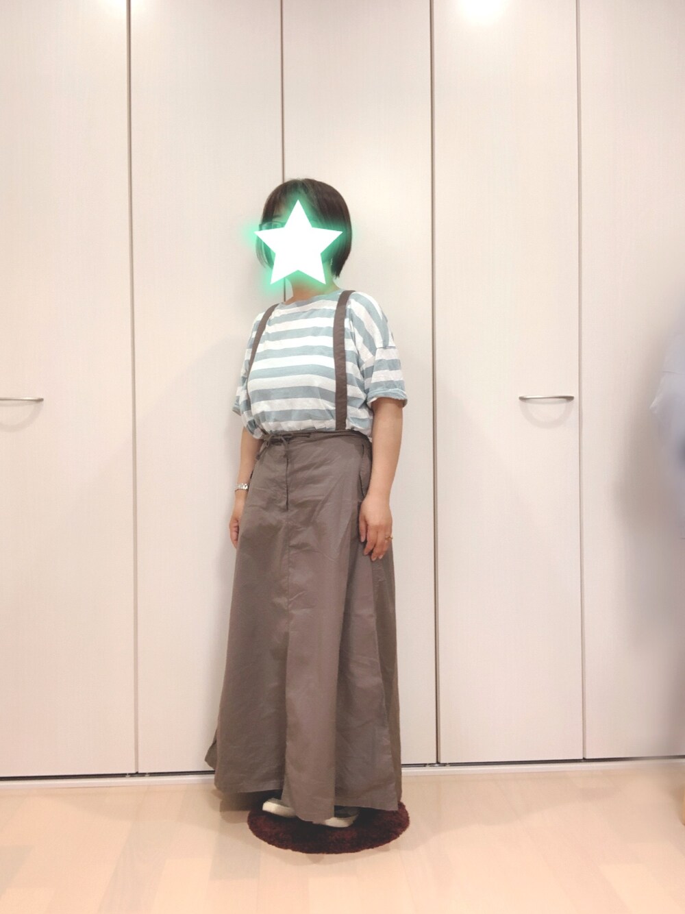 こんにちは😊 今日はお休み。 息子を送った足で整骨院に行ってきました。 凝り固まった全身をほぐしてもらい、初めて小顔整体を受けて来ました。 あごがめっちゃ痛かったけど、終わった後に顔を触ったらスッキリ。 また時間がある時に受けたいです。 今日はRanieのミントグリーンボーダーTにnikoandのサスペンダーつきスカートでした。 スカートはお店で見て色と形に一目惚れ。 saleで買いました。 ウエストで合わせると長すぎになってしまうので、サスペンダーで穿いています。 Admiralのリバティコラボのハイカット、久しぶりに履いたけどやっぱり好き。