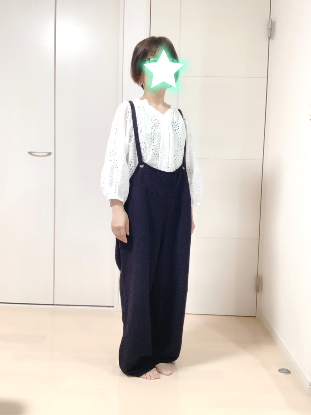 こんにちは。 昨日は結局私も娘も発熱はなしで、娘は頭痛で薬を飲んだ位で大丈夫でした。 娘は塾を一日お休み出来ると期待していたらしいけど元気なので行かせましたよ(笑) 昨日のコーデ。 サマンサのカットワークレース七分丈ブラウスにsoulberryのネイビーのサロペットでした。 朝方涼しかったので、七分丈のブラウスにしたらお昼からいい天気になって暑くなったので、ほぼ腕まくりで過ごしていました😅 soulberryのサロペットは、購入履歴を見たら4年前でした。 ネイビーでサラッとした素材なので、とても着やすくて(*'∀')b コーデがシンプルだったので、ピアスとサンダルはシルバーに。 サンダルもそろそろ終わりかな?