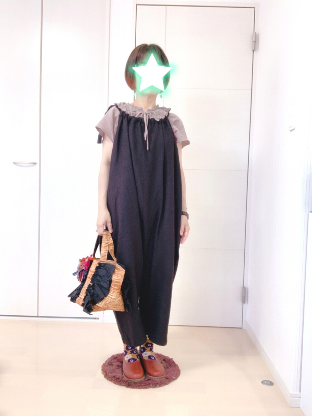こんにちは。 三連休最終日。 今日は墓参りに行ってきます。 今日は娘の塾がお休みなので、久しぶりに家族全員で🚙💨✨ 今日のコーデ。 昨日kubosan madeのサロペットが届いたので早速着ました🥰 トップスはサマンサの衿レースブラウスを合わせました。 モカにブラックを合わせるのが好きです💕 minneで買った赤い靴がお気に入りすぎる🥰