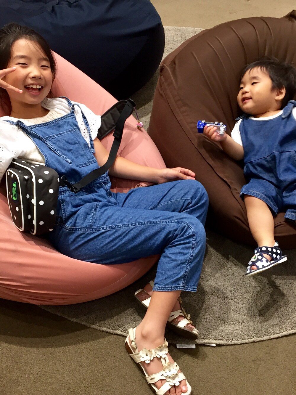 MUJIのソファでくつろぐふたり。 このソファに座ったら立ち上がれないね(笑) 息子は帰りにもこのソファに座りたかったらしく、なぜか下のカーペットにごろんしてた(♡ˊ艸ˋ♡)