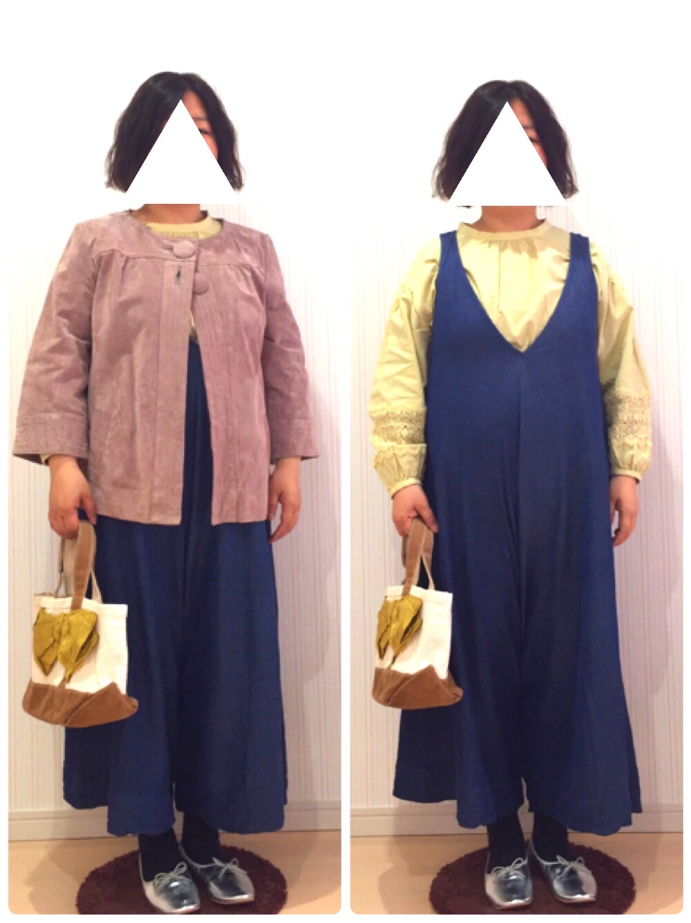 こんばんは✨ 今日はまた真冬の寒さだったけど、明日は暖かいみたいなので、春に近づいているかな? 東京は桜が開花したみたいなので、こちらももうすぐ桜が見られるかしら?🌸 先日の暖かかった日のコーデ。 studio clipのイエローのブラウスを中心に、ローリーズファームのサロペットを合わせました。 アウターは数年前に買った、Best Mountainのもの。 ノーカラーで、ピンクのスウェードが可愛くて買ったもの。 ボタンも大きめなのがポイントになってます。 靴もstudio clipのもの。 シルバーかピンクで迷って、シルバーにしたけど、ピンクも優しい色で可愛かった❤ Dahliaのリボントートはマスタードカラーが気に入ってます😊 明日は娘の学校の卒業式。 娘はまだ卒業式に出られないのでお休みだけど、私は仕事💻 春休みはお休みを取ってお出かけしようかな?