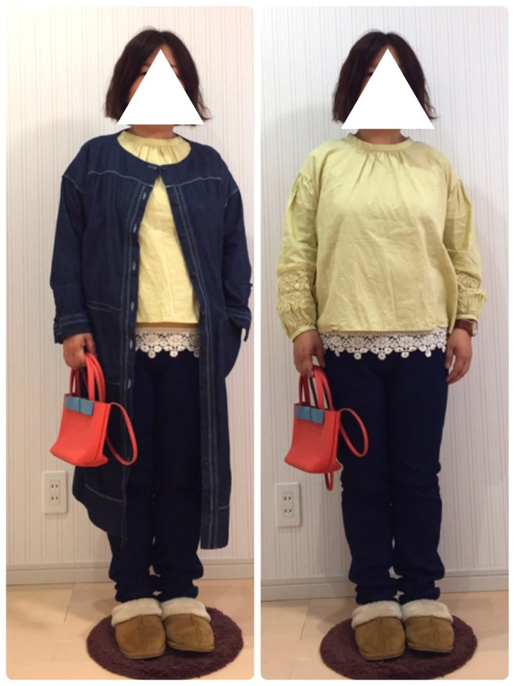 こんばんは✨ やっと洗濯以外の家事も出来るようになってきました。 洗濯だけはしんどくてもやっていたけど、掃除やキッチンに立つのは出来なくて、一昨日位から徐々に家事を増やして、今日やっと久しぶりに掃除機をかけた😭 午後は今更ながら子供たちの新しい上履きを買いに行ったり、買い物をしたりしてお出かけも大丈夫そう。 後は来週からまた仕事に復帰するので、バタバタに慣れるかどうか? 今週のんびりさせてもらったので、またいつもの日常に戻れるかしらん😅 いつかのコーデ。 studio clipのイエローのブラウスを中心に。 袖が透かし模様になっているのがポイント。 w closetの裾レースのタンクトップを合わせて、 デニムはまだ寒かったから裏起毛の😅 デニムジャケットはセレクトショップで購入。 ノーカラーで長め。 スカートにも合いそう😊 明日は保育園と学校に提出する書類を記入せねば。 毎年この時期は書類を書くのに気を使います💧