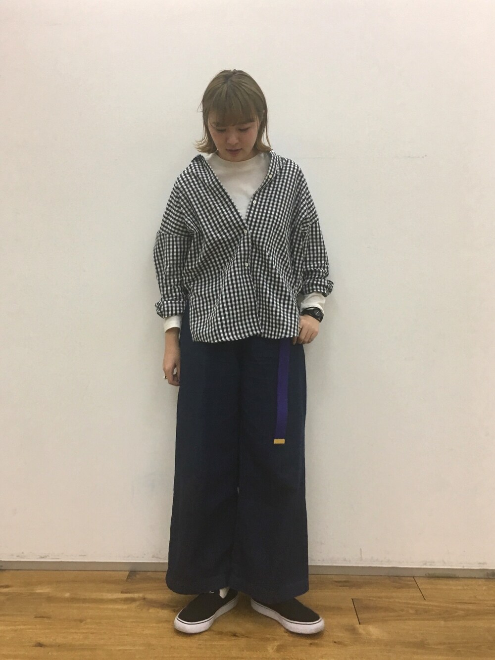 にはち まあり ☻のシャツ/ブラウス「・ギンガムチェックBIGシャツ」を使ったコーディネート