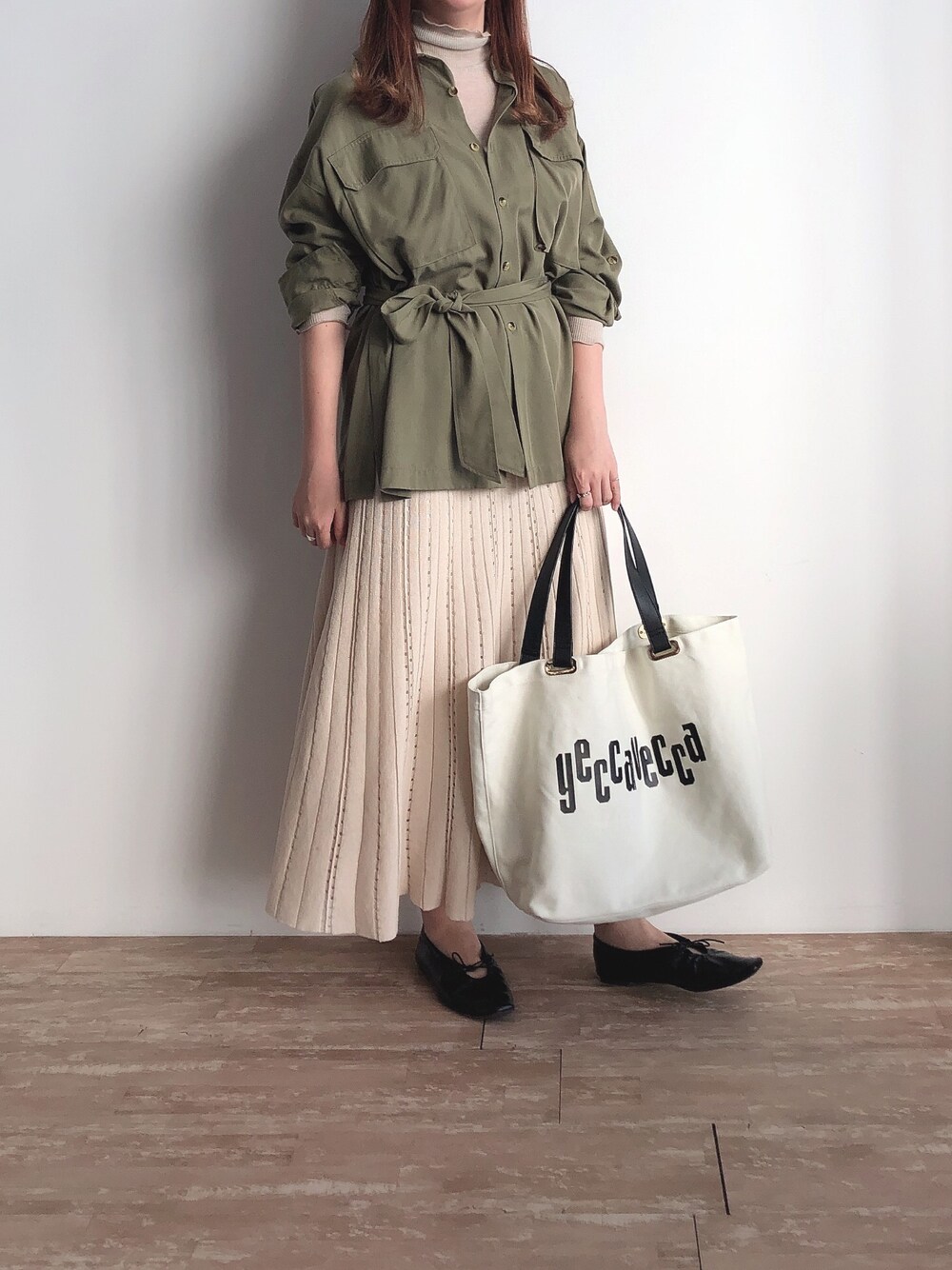 ベルト付きシャツはゆったりシルエットにメリハリをプラスしてくれますね! ニットスカートも暖かくなった今週から活躍です!