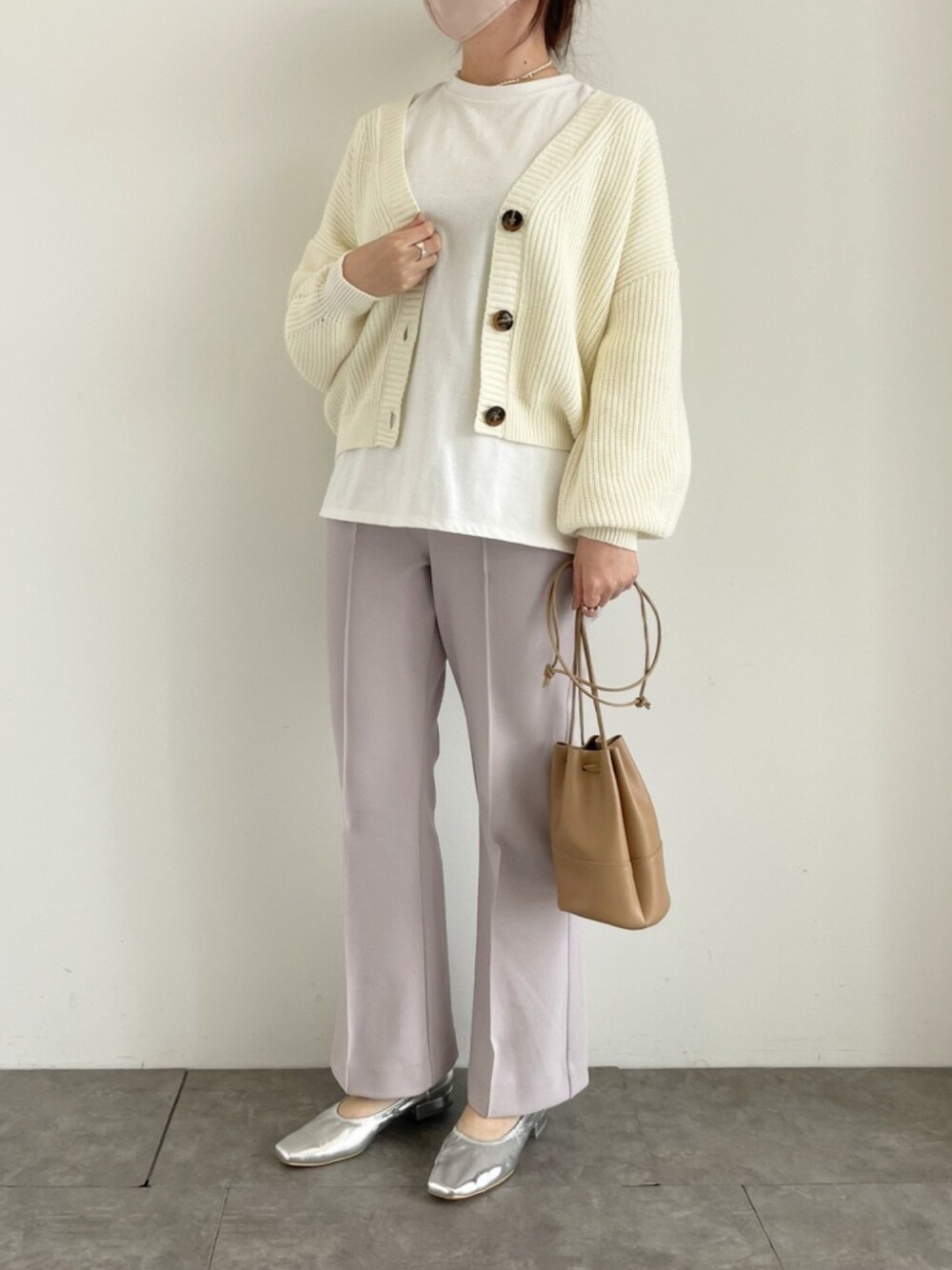 にはち まあり ☻のカーディガン/ボレロ「【WEB限定】ドロップショルダー畦ニットカーディガン *」を使ったコーディネート