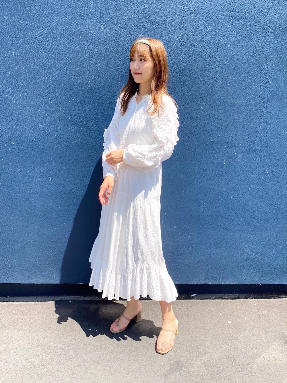 梅雨明けで一気に夏がやってきましたね🌻 白いワンピースを着て海に行きたくなりました🫠 うすミドリのカチューシャを差し色にコーディネートを組んでみました、、! イヤーカフで可愛らしさもプラスしています🐻🫶