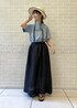 Tシャツ/F スカート/F サンダル/36 3種類のデザインの中から、1番シンプルなサックスブルーを選びました。素材感もサイズ感もとても良く、リアルバイしそうです。ロゴの「DIMANCHE」はフランス語で日曜日という意味があるみたいです。お休みの日に是非✴︎