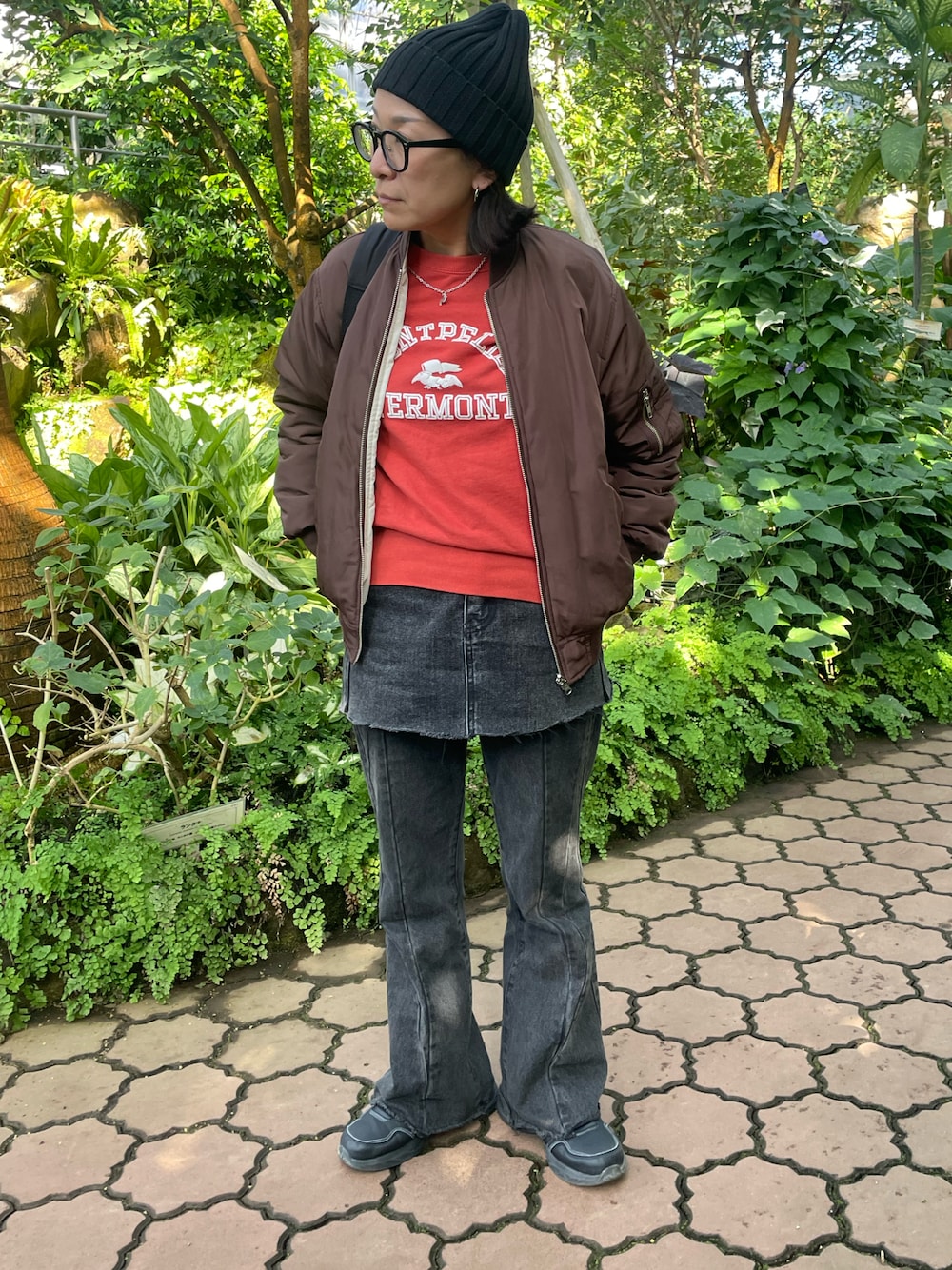 今日のかっこ。 スカートレイヤード古着風に 大好きな植物見に 市川まで、 サイコー‼️👏な場所でした!