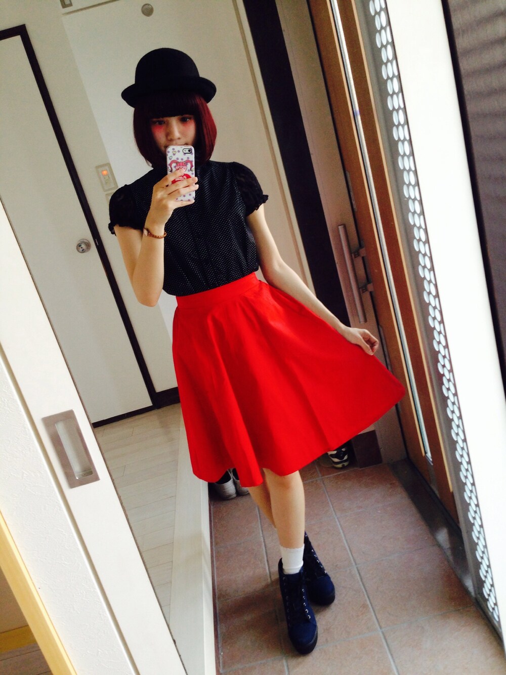 沖縄はまだポカポカだけど秋服着たかったので、カラーを秋色に♪ボーラーハットをプラスしてさらに秋らしく♪