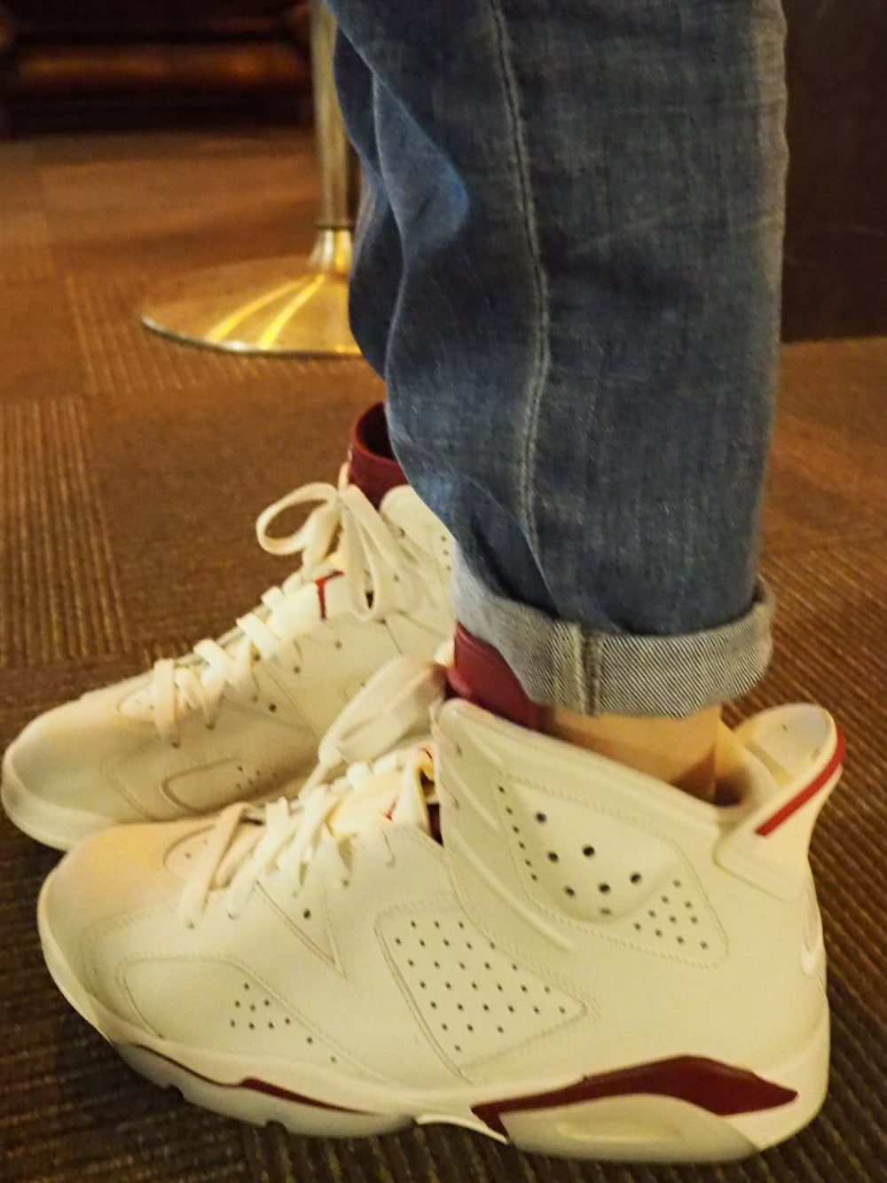 KAZUのスニーカー「JORDAN AIR JORDAN 6 RETRO(384664-116)OFF WHITE/MAROON【ジョーダン エア ジョーダン 6 レトロ】 」を使ったコーディネート