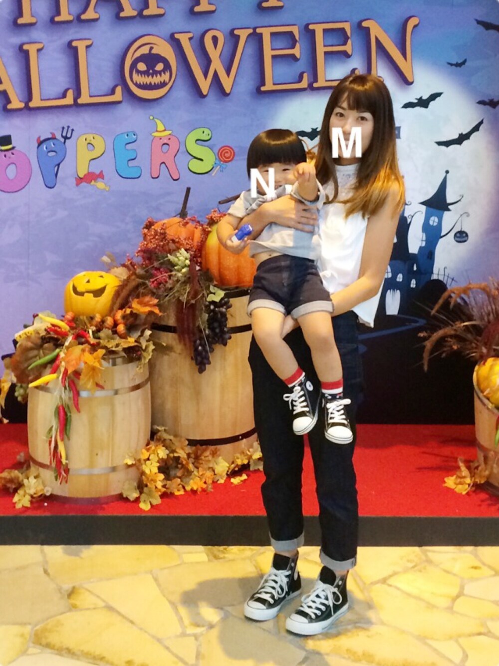 載せるほどのコーデ&写真でもなくて申し訳ないのですが…(´ω`;) 息子が逃げるので、無理矢理抱っこしたらおへそがちらり♡笑 一応、パンツとスニーカーをリンクさせたつもりです。(;^_^A 早いものでもうハロウィンなんですね〜。。。 ハロウィンに無関心な我が家ですが、記念に撮ってみました!笑 今年は息子だけでも仮装させてみよっかな(♡ˊ艸ˋ♡)