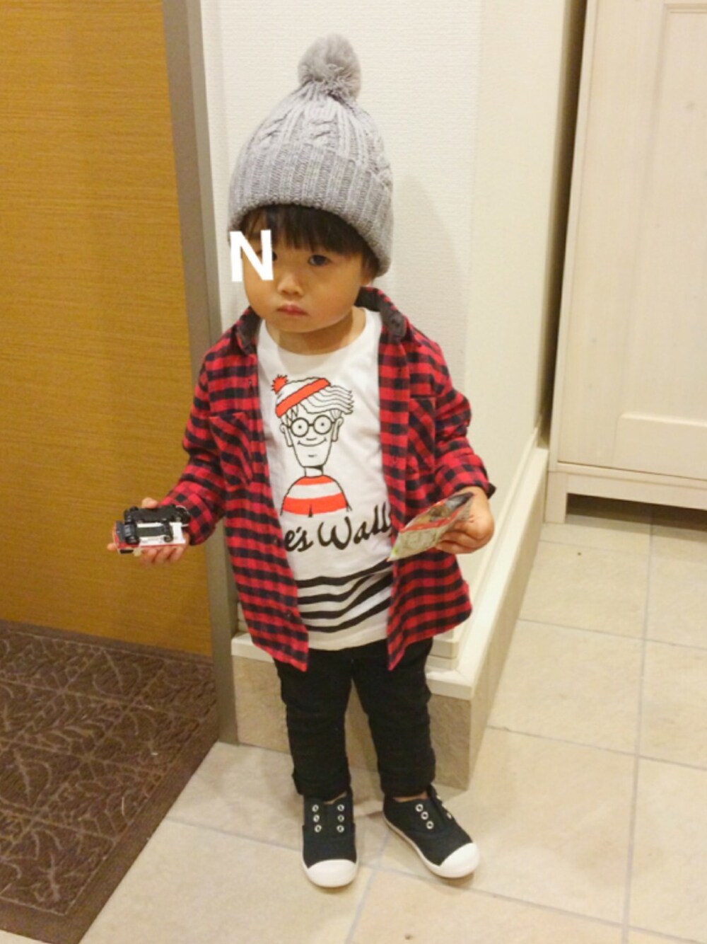 昨日コーデ☆ 寒かったのでポンポンつきニット帽をかぶせました(♡ˊ艸ˋ♡) 久々ちゃんとした写真撮れた〜! 小窓はニコニコバージョン♪