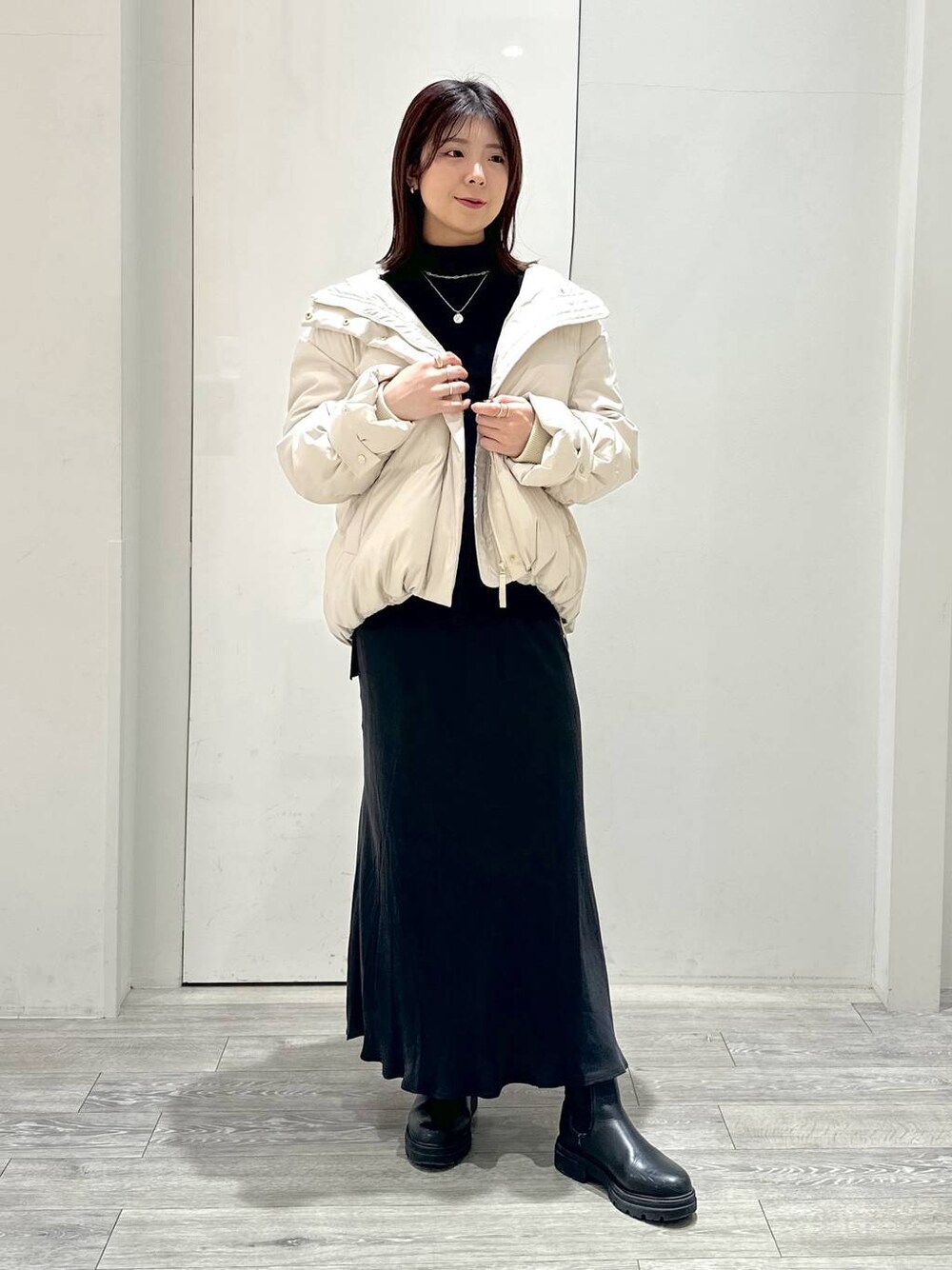 m a k o(BARNYARDSTORM横浜そごう店)のダウンジャケット/コート「フーディーAラインショートダウンコート」を使ったコーディネート