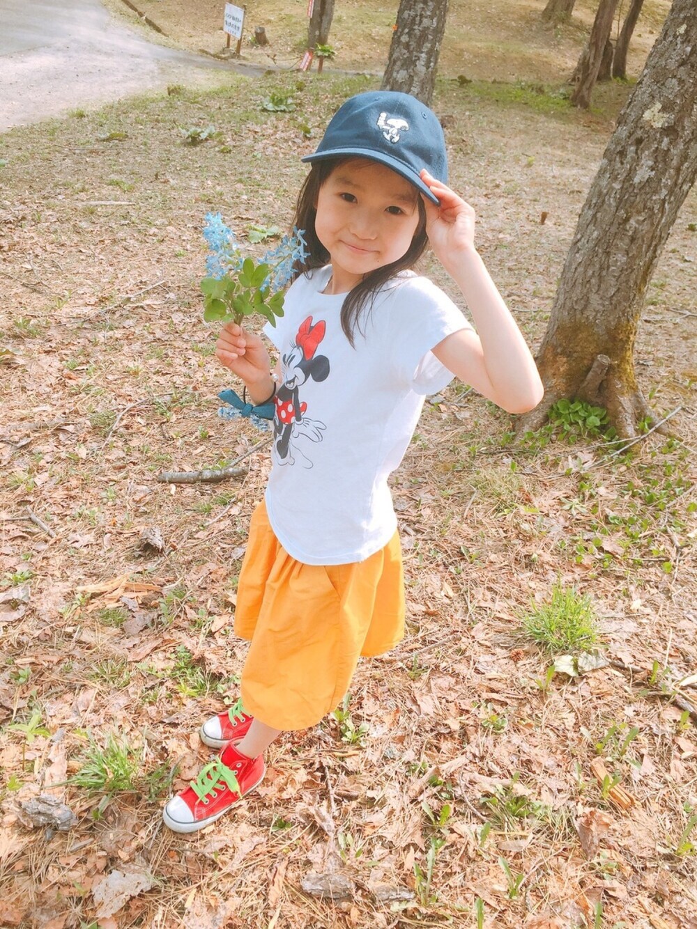 おはようございます☀ 今、気づいたけど、ミニーにスヌーピーにキャラクターだらけコーデでした🐦 山にお花摘みに💐 狼でも🐺出てきそう🐺