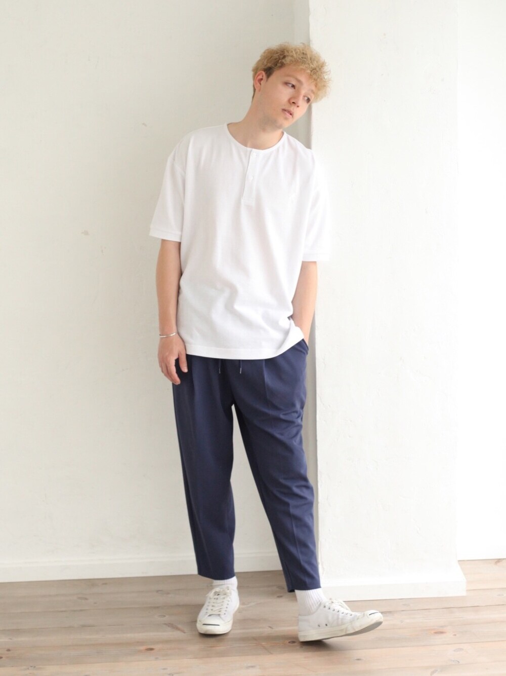 Nilway_official(Nilway)のポロシャツ「【別注・コラボ】Nilway×KANGOL ワンポイント刺繍ノーカラーポロシャツ」を使ったコーディネート
