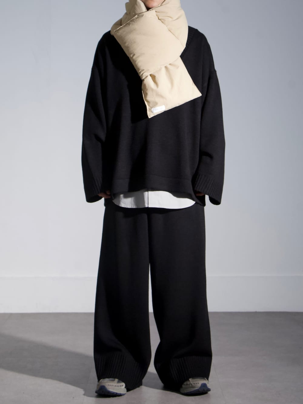 【Nilway 2022fall/winter】 -Effortless fashion- ダウンジャケットのようなボリュームのある見た目が特徴的な中綿マフラーが登場。 保温性が高く、真冬でも首周りをしっかりと温めてくれます。 シンプルな作りなのでデイリーで使うことができ、普段のコーデにこなれたイメージをプラスしてくれます。
