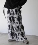 【Nilway 2023spring/summer】 -collage- 総柄プリーツワイドパンツ。 ウエストはゴム仕様&ドローコードでゆったりとリラックスした穿き心地で今っぽいワイドシルエットになっています。 Nilwayオリジナルの総柄デザインで、コーデにアクセントを加えます。 程よい光沢感と柔らかなドレープ感のある素材を採用し、上品で軽やかな動きを実現してくれます。 透け防止で裏地を張っており、しっかりと配慮