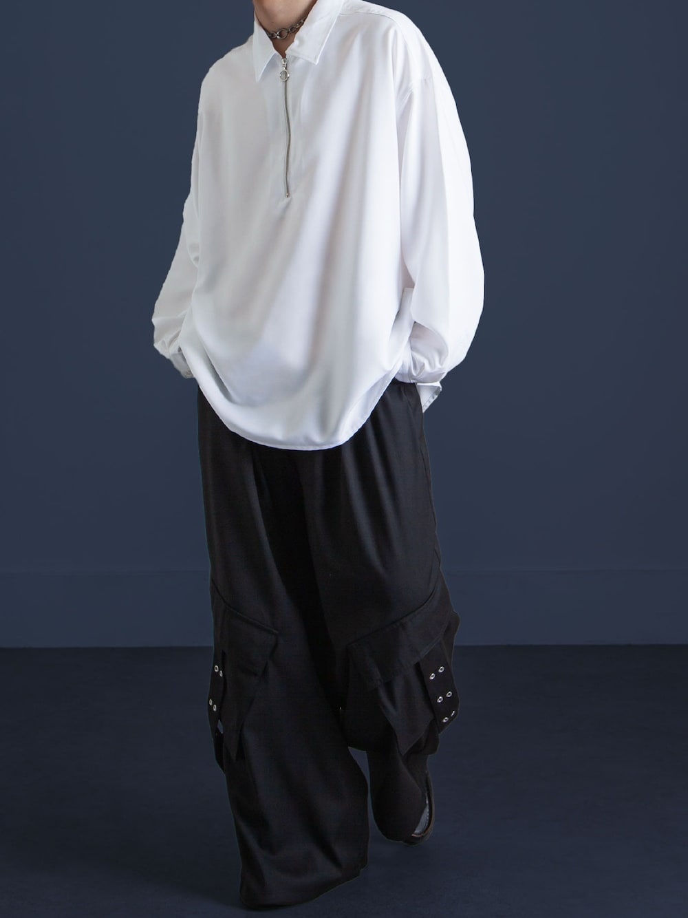 Nilway_official(Nilway)のシャツ/ブラウス「Half Zip Loose Shirt / ハーフリングジップルーズシャツ」を使ったコーディネート