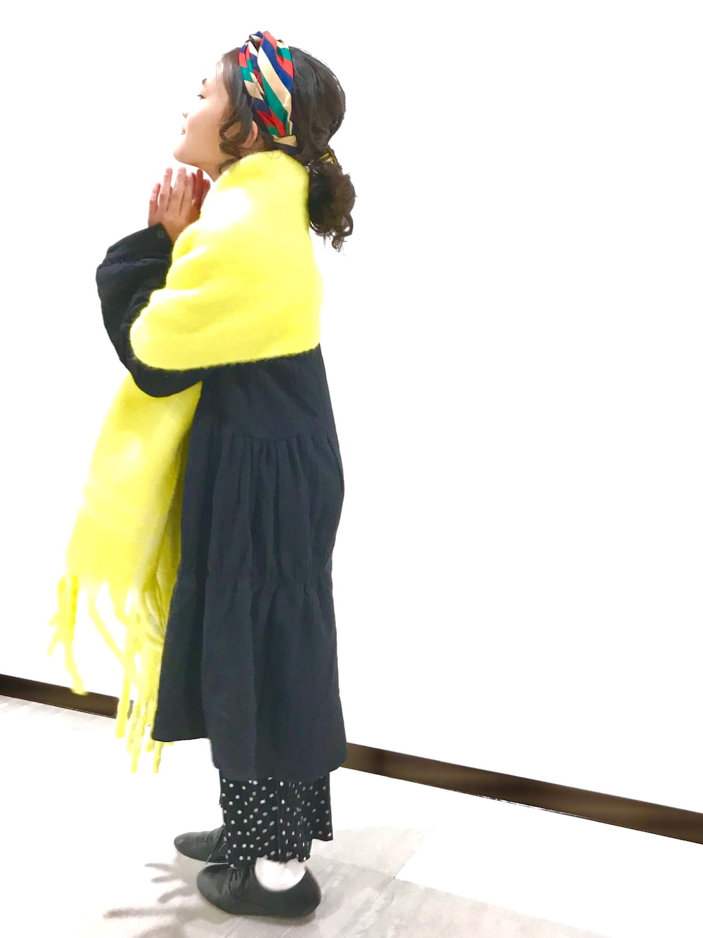 見ていただき ありがとうございます😊 今日で 1月も終わりですね。 早いなぁ〜。 今日は 皆既月食🌕 晴れてたら見えるらしいので 娘と見ようと思います。 ブラック✖︎ ホワイト ➕イエロー。 ヨークワンピ を羽織りにして着ました。 着まわし出来そうです。 何か 祈ってる風に見えますが、何も 祈ってません😁