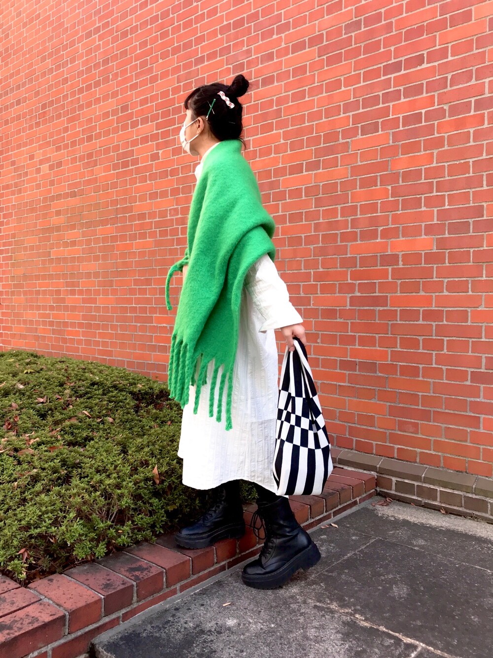 あやねこのトートバッグ「【forksy.】アソートニットマルシェバッグ チェッカー/カラー配色」を使ったコーディネート