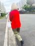 見てくださり、ありがとうございます♪ きれいな赤♥️の古着ジャケットにカ-キパンツ合わせ。 Tシャッツにフリルビスチェを合わせてみました。
