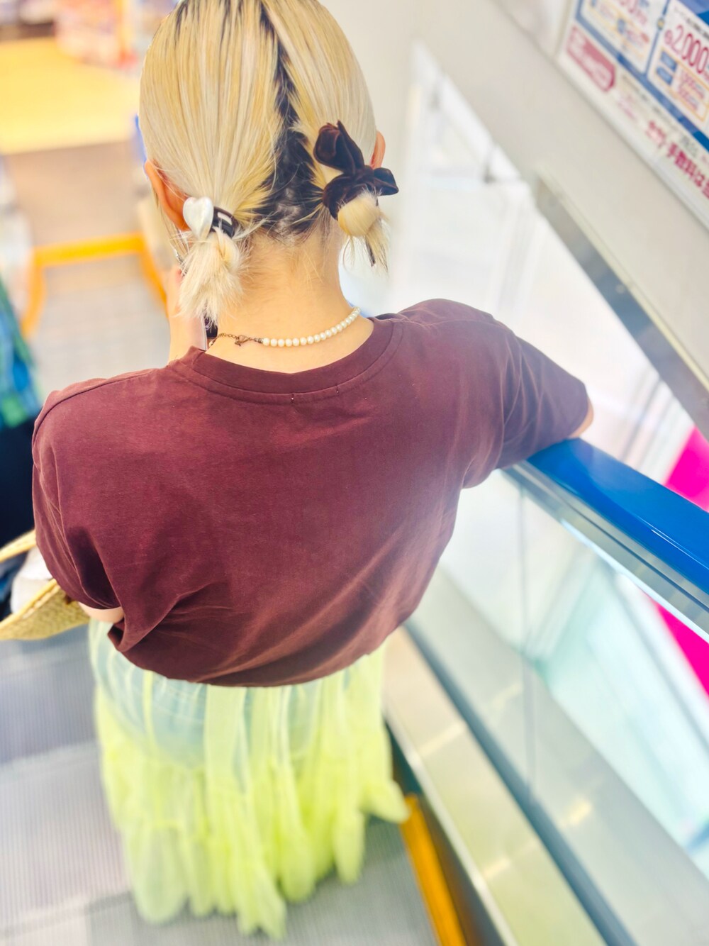 いつかの通学服。 きれいな色のキャミワンピを古着屋さんで見つけました💚💚💚💚💚 金髪にも似合う。