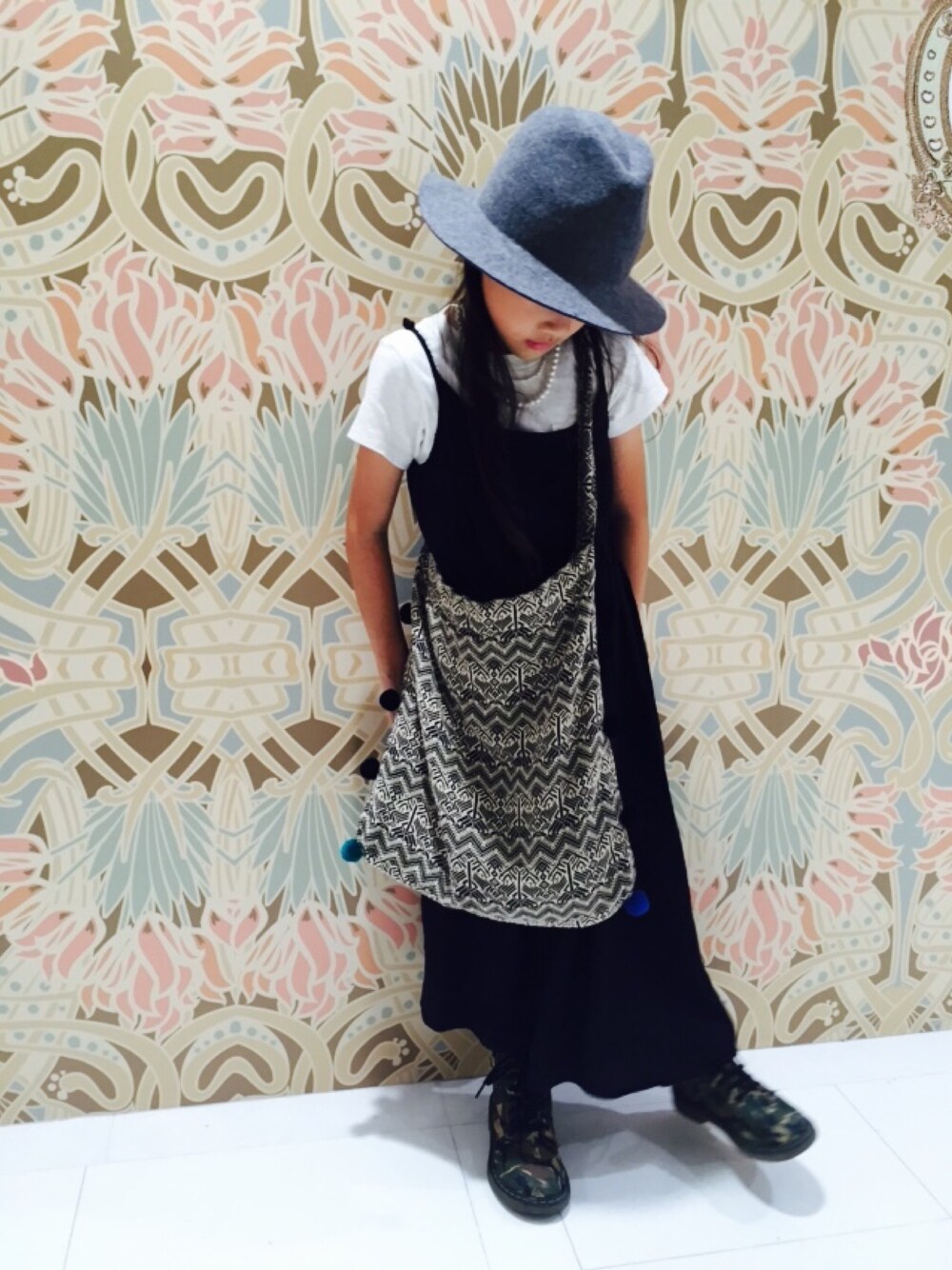 よく履くおとな物チュニックワンピ。 ハットと、go toのデカバック。 このデカバック、柄も大人っぽくて大好き💕 大きくて肩で縮めてるけど(笑)