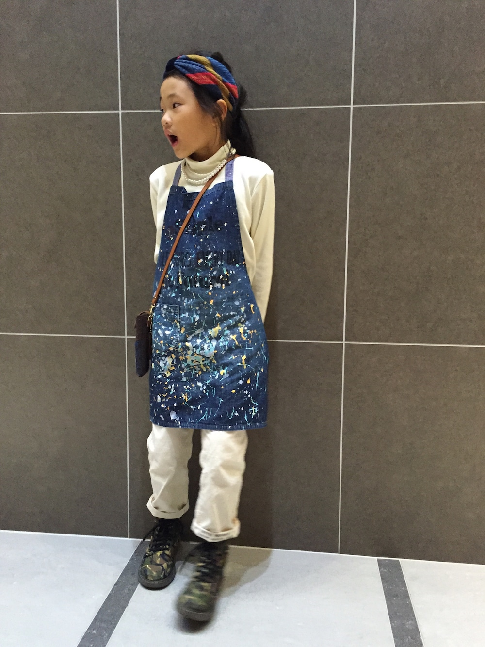 昨日のコーデ。 先週のワークショップでペイントした go toのエプロン🌟 上下白にして、ヘアバンドをつけて、カフェの店員さん風にしてみましたぁ。 連休 堪能中(笑) 夜 宿題してたけど😅 見ていただいて、ありがとうございます😄