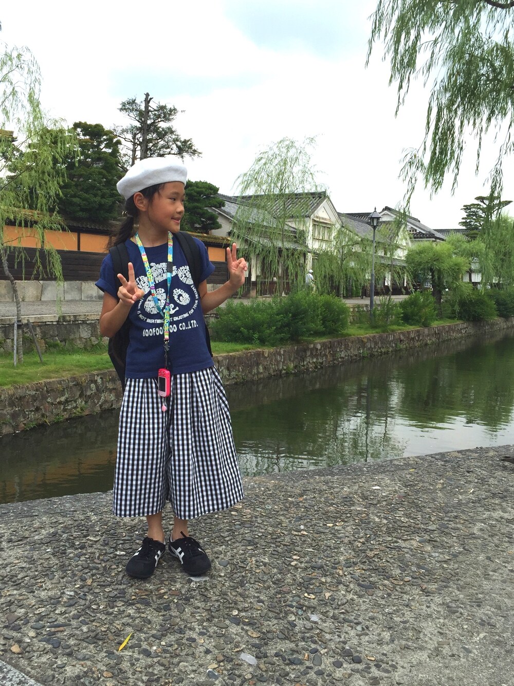 こんばんは〜😃 見ていただき、ありがとうございます🙏 8月も 宜しくお願いします。 暑い日が続いてますね😓 昨日の広島は、35℃… 暑かった☀️ 今日も暑かった😭 の中、倉敷の美観地区に行ってまいりました😅 暑いから、ちょっと歩きは 涼しいお店の中に入りでした😰 娘の ピースしながらのよそ見は、厳つい顔で、獲物を捕らえた感を出し近づいて来る鳩を 気にしてのピース✌️です😁