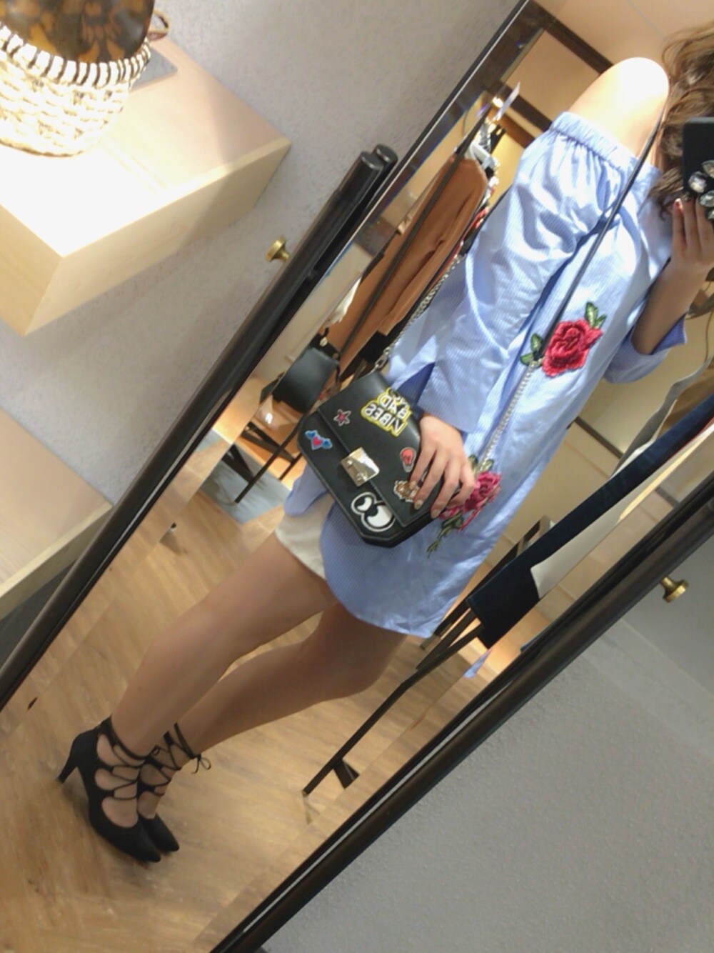 可愛くて3回くらい試着して やっぱり可愛いかったこのオフショルワンピ🌹 普段オフショルが苦手だけど ついに手を伸ばして... ♡