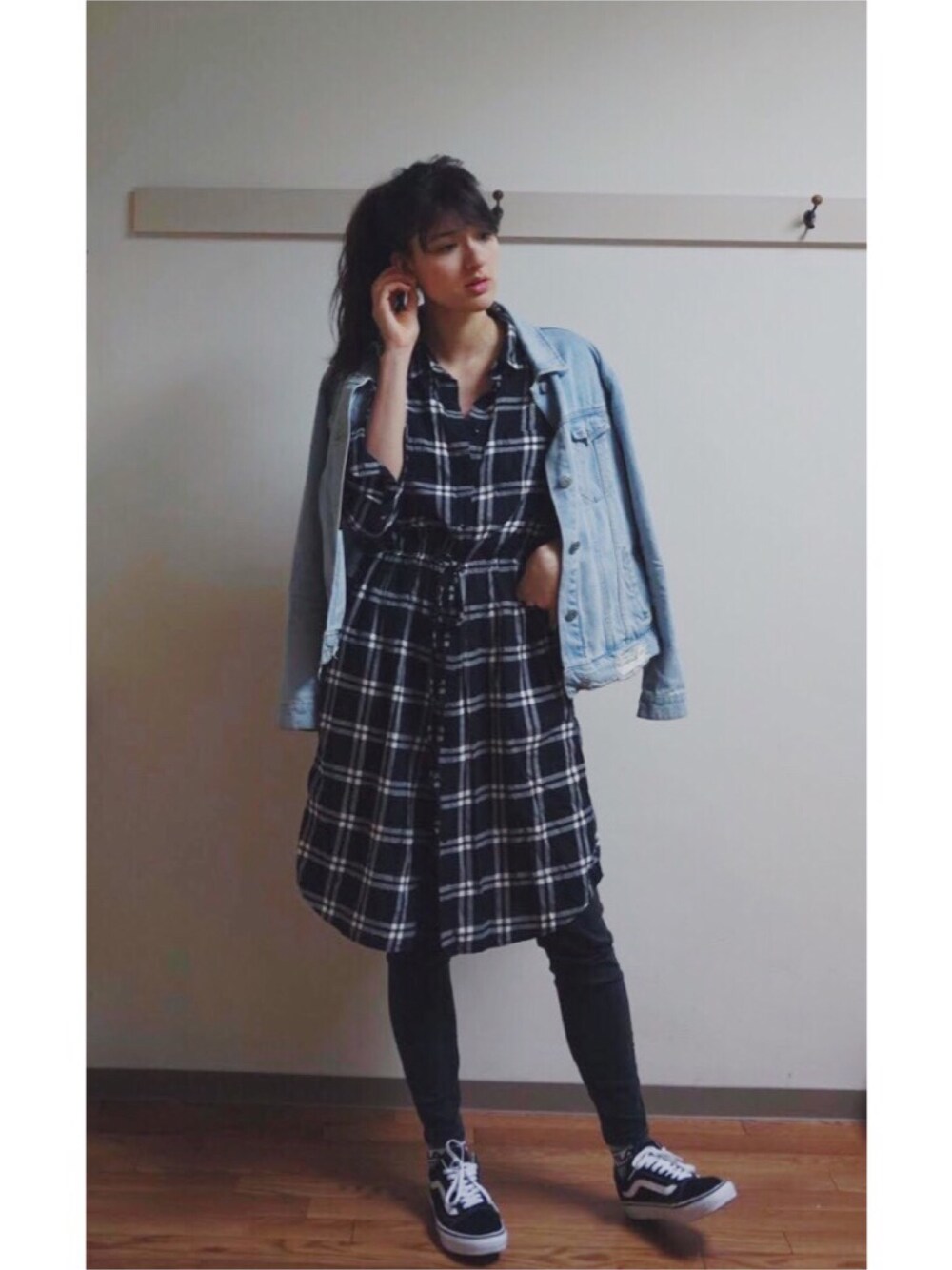 ご覧いただきありがとうございます! いつもいいね、SAVEやコメントも本当に感謝です💛 今回はUNIQLOのロングチェックシャツを使ったラフなコーデです! デニムジャケットはオーバーサイズで、袖とポケットの下にダメージが少し入っています。 ではでは 👋💕